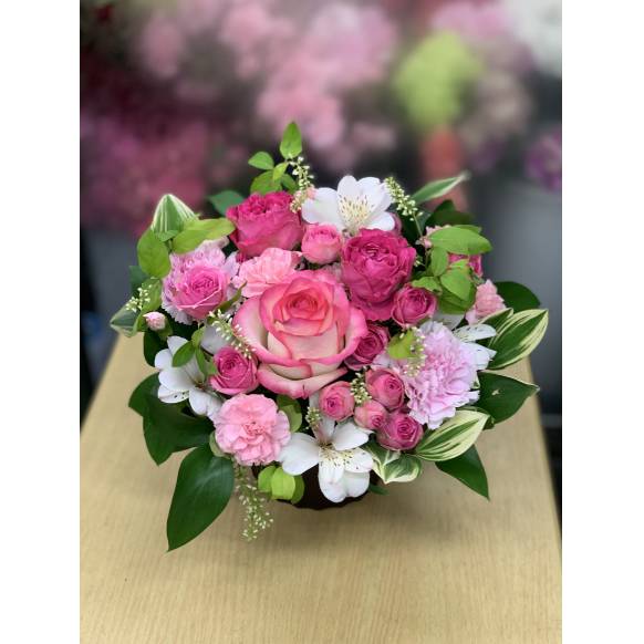 【フローリストチョイス】オールラウンド・アレンジ(やわらかピンク系 M)